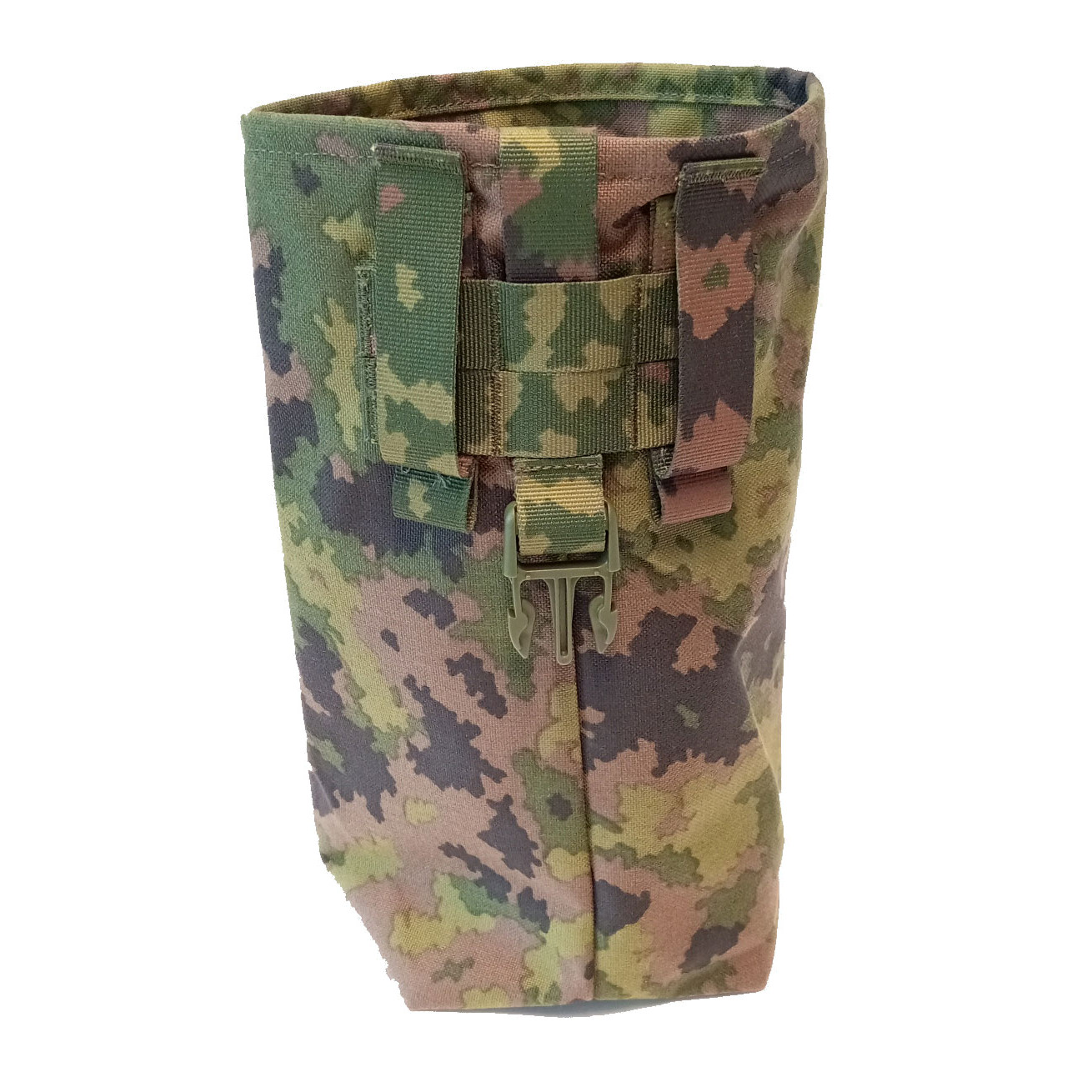 Taskuun mahtuu vähintään viisi lipasta, ja se on valmistettu NIR-yhteensopivasta, erittäin kestävästä M05 Cordura 1000D -kankaasta. Jäykistetty suuaukko pysyy avoinna nopeaa käyttöä varten, ja säädettävä kiristyskaulus mahdollistaa suun sulkemisen pölyn, roskien ja sateen estämiseksi. Vedenpoistoaukko estää veden kertymisen, ja tasku voidaan rullata kokoon ja lukita omalla soljellaan kompaktiksi paketiksi kuljetusta varten.